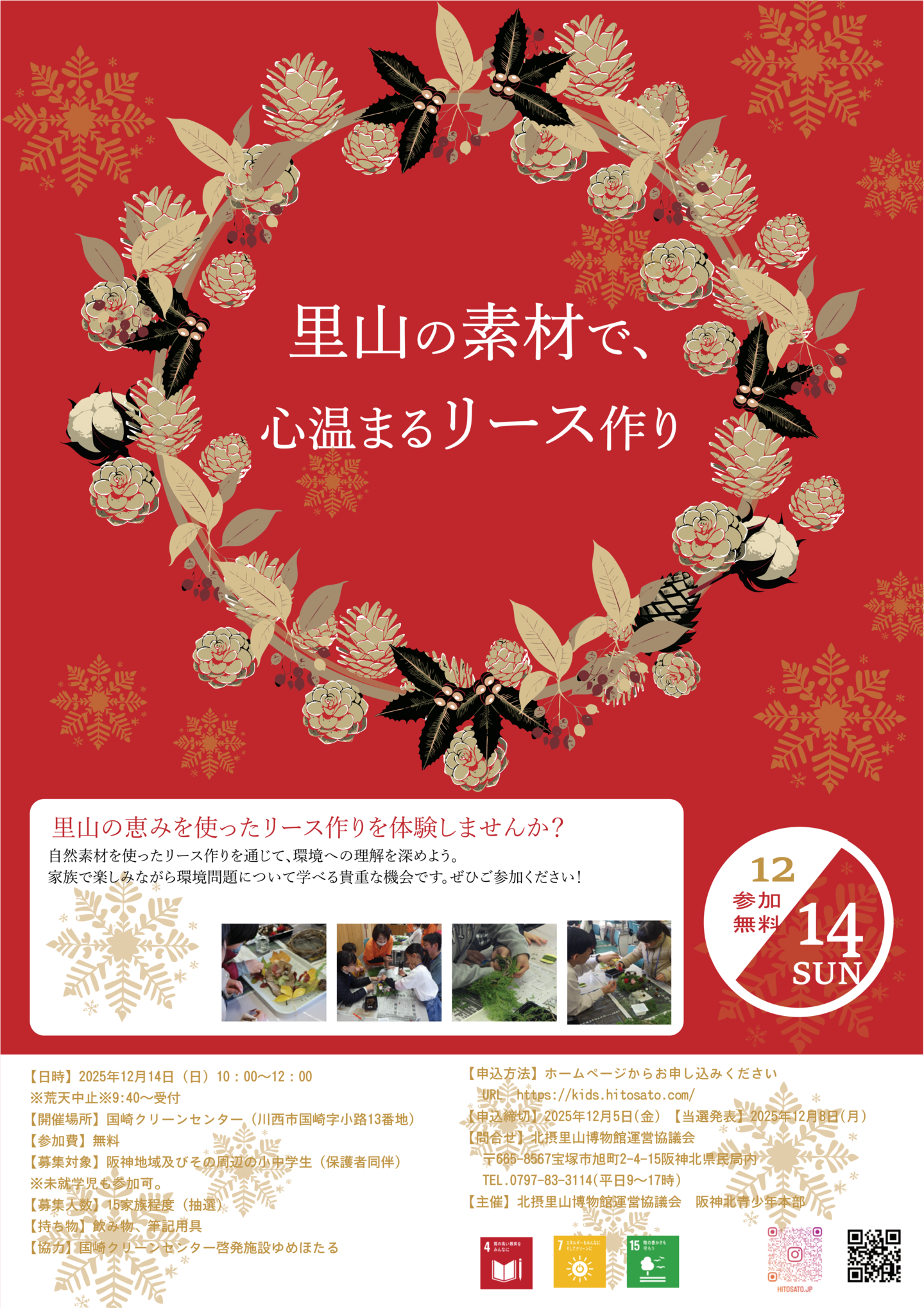 | 【内容】 | 里山の木の実でクリスマスリースづくり |